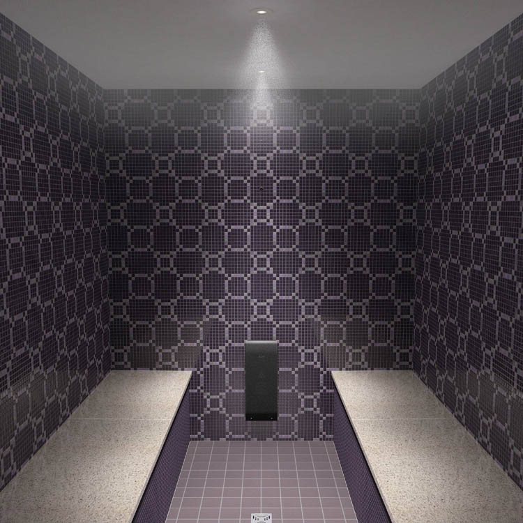 墻面和地面采用大理石、馬賽克或者普通瓷磚鋪設