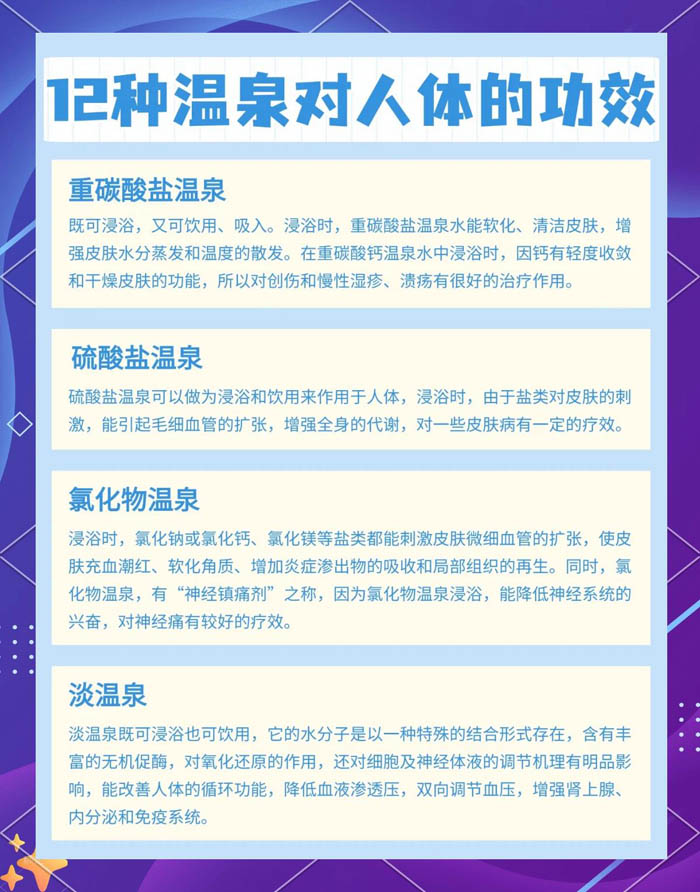 溫泉對身體的效能如下圖一、二,具體說(shuō)法如下: