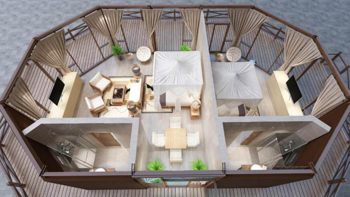 連頂多邊形系列可作為套房、餐廳、休閑娛樂(lè )等場(chǎng)所